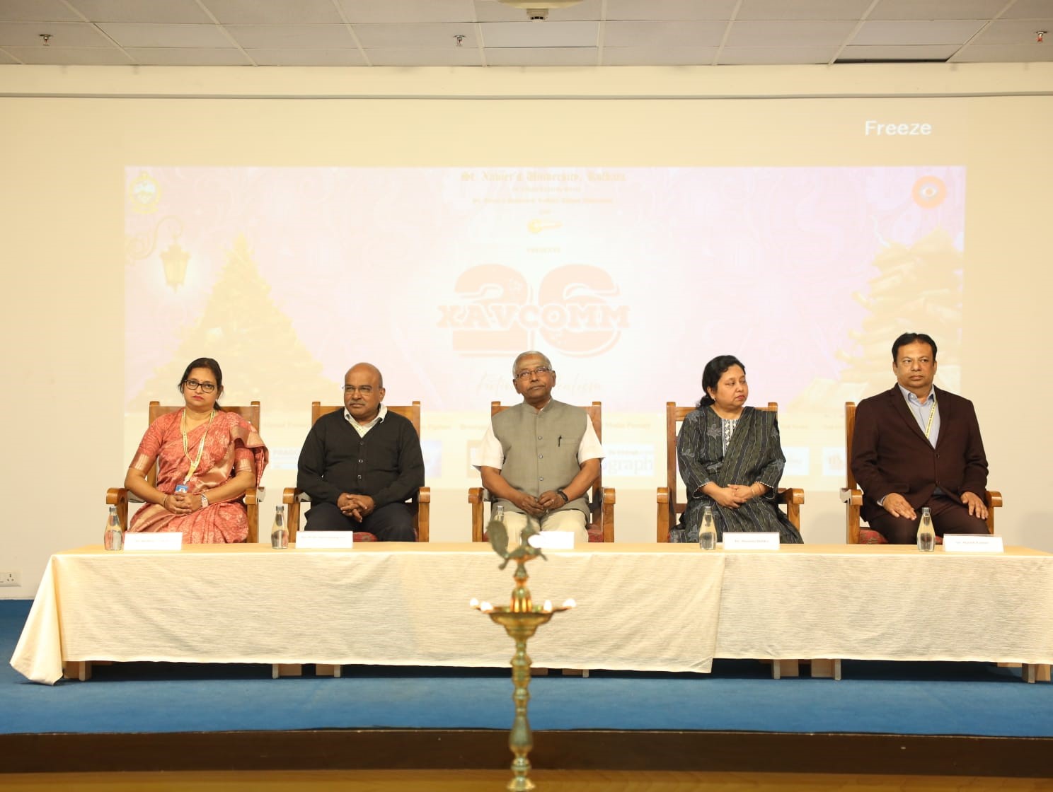 The programme commenced with the lighting of lamp by Rev. Dr. John Felix Raj, S.J., Vice-Chancellor of SXUK; Fr. Dr. Xavier Jeyaraj, S.J., Registrar; Dr. Susmita Halder, Dean of Faculty of Arts and Social Studies; Dr. Harish Kumar, Head of Department of Mass Communication and others.
