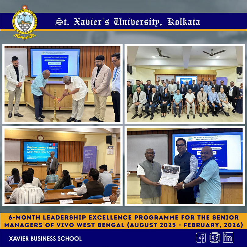 Xavier Business School, St. Xavier’s University, Kolkata successfully conducted a 6-Month Leadership Excellence Programme (MDP) for senior managers of Yingjia Communication Pvt. Ltd. (VIVO, West Bengal). The programme was designed to enhance leadership capabilities, strategic thinking, and managerial effectiveness among corporate professionals. A total of 22 senior-level managers actively participated in the programme, engaging in interactive sessions, case discussions, and practical learning activities. The initiative provided participants with valuable insights into contemporary management practices and leadership skills. The programme concluded with a certification ceremony, recognizing the participants’ commitment to professional development and organizational excellence.