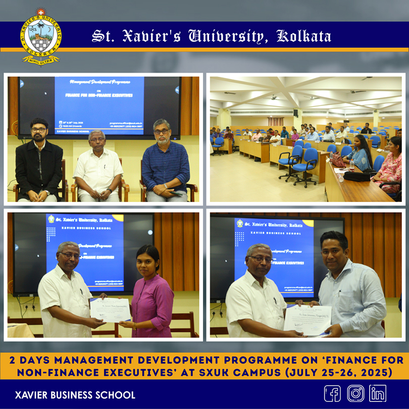On July 25 and 26, 2025, Xavier Business School, St. Xavier’s University, Kolkata, successfully conducted a two-day Management Development Programme on “Finance for Non-Finance Executives” for middle to senior-level corporate professionals. The programme was designed to strengthen financial awareness and decision-making skills among managers from diverse functional backgrounds.