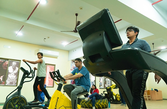 The gymnasium has all modern equipment to keep the students fit and healthy. Exercise reduces the risk of any ailment, helps to release stress and fatigue, improves concentration,and helps to build new friendships at the common space. Cultivating a healthy relationship with fitness for personal well-being is essential for every individual.A full-time trainer is also available to guide on personal needs.
