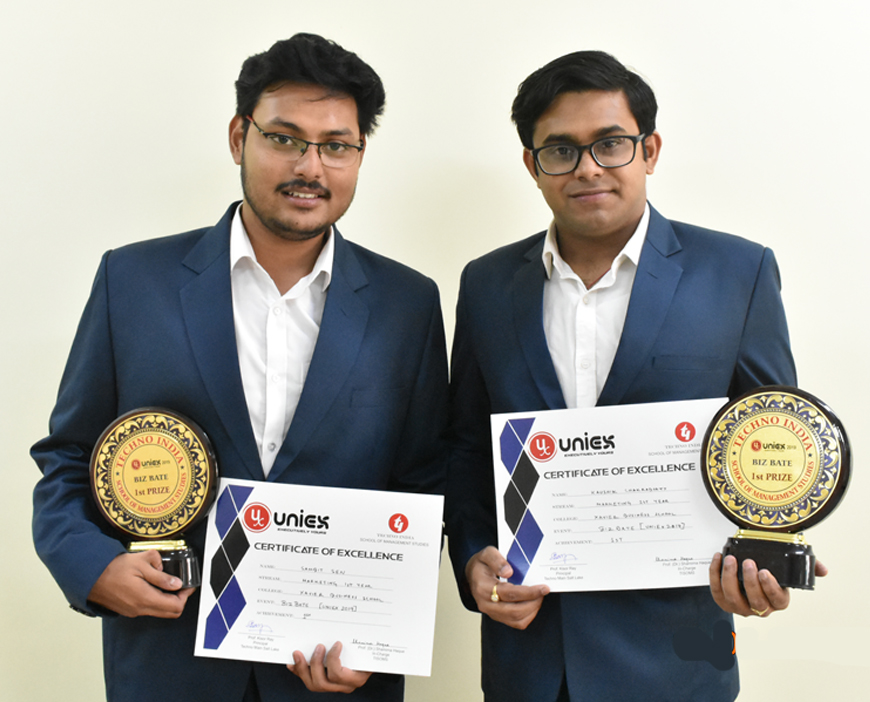 Kaushik Chakraborty & Sambit Sen have secured 1st position in the event BIZBATE (Debate) organized by Techno India School of Management, Kolkata in March 2019.