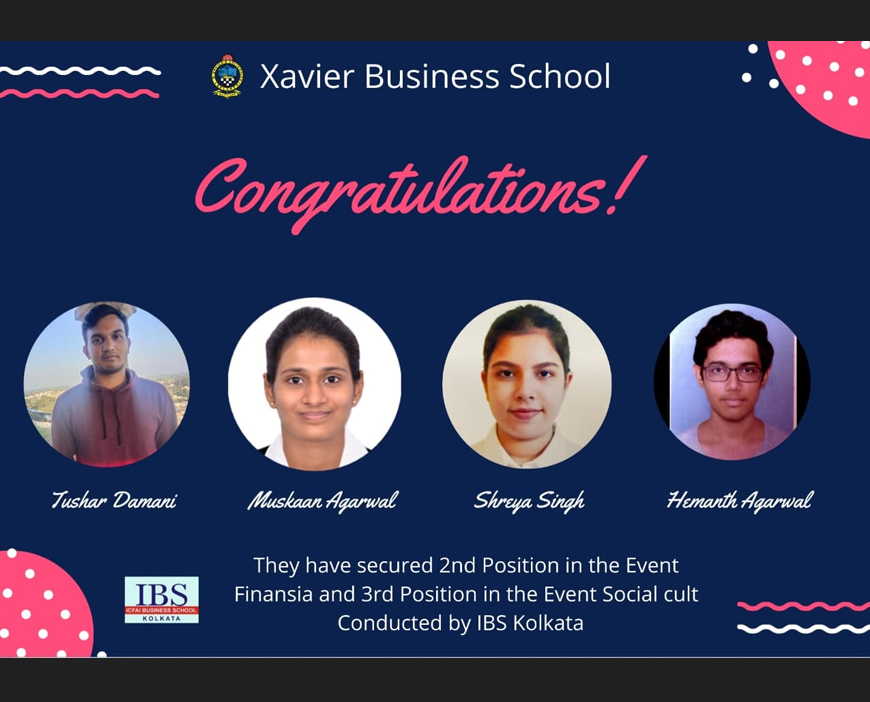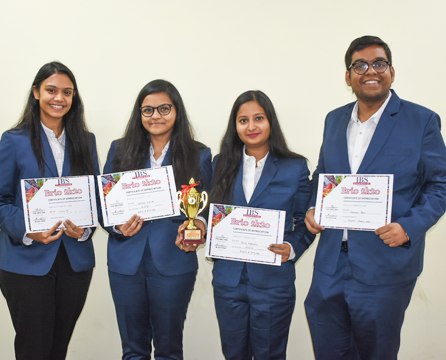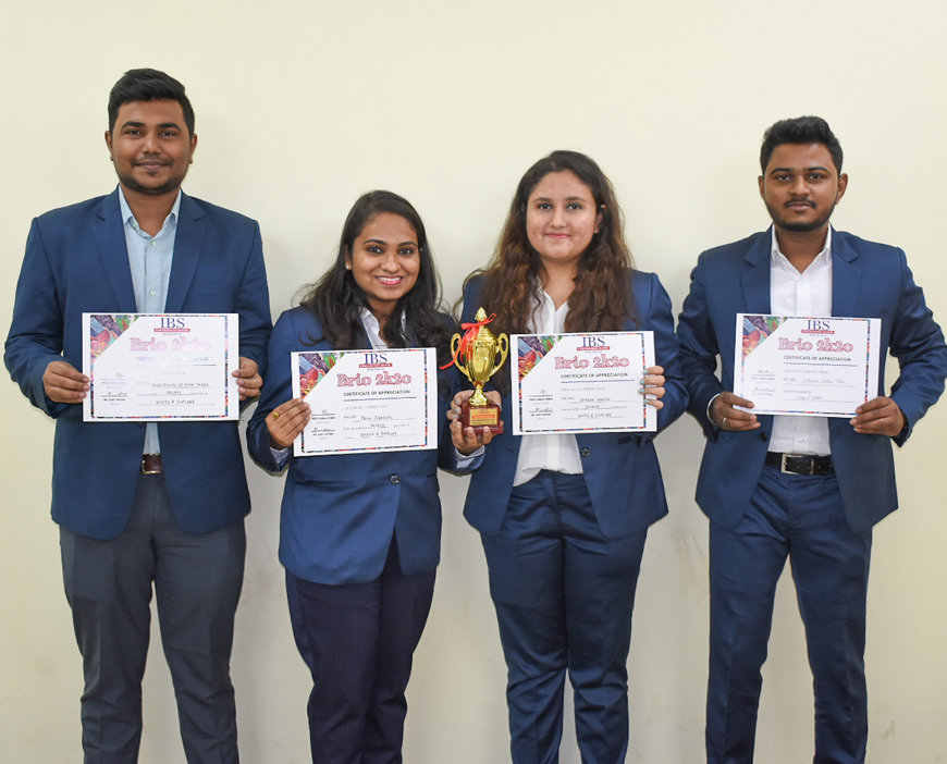 Akash Singh, Priya Agarwal, Simran Handa and Subhransu Patra of MBA 1st Year (2019-21 Batch) have secured 2nd position in the event Guess & Explore (Human Resource) at BRIO 2k20 organized by ICFAI Business School (IBS), Kolkata on 15th January 2020.
