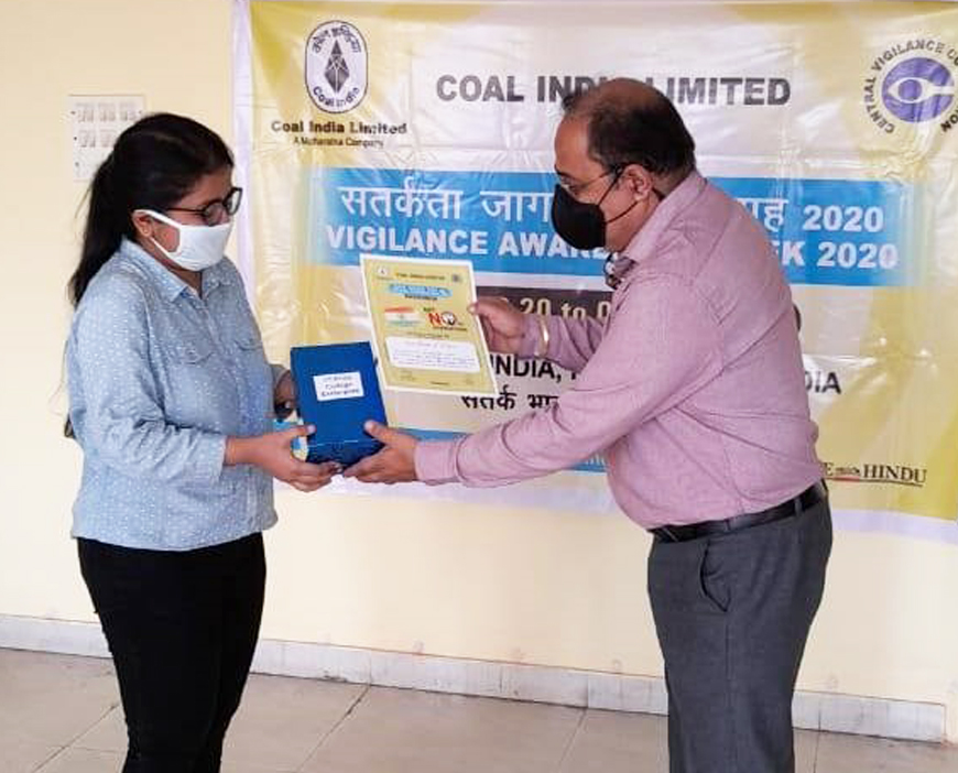Vasundhara Lodha of MBA 1st Year (2020-22 Batch) has secured 1st position in Inter College Extempore Competition organized by Coal India Ltd. on 9th November, 2020.