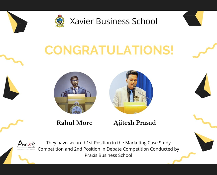 Ajitesh Prasad & Rahul More of MBA 2nd Year (2019-21 Batch) have secured 1st position in the event BIZZARE-E-BAZAAR (Case Study Competition) and 2nd position in the event Pursuit of Dispute (Debate) at SPARDHA 2021 organised by Praxis Business School on 13th February 2021.
