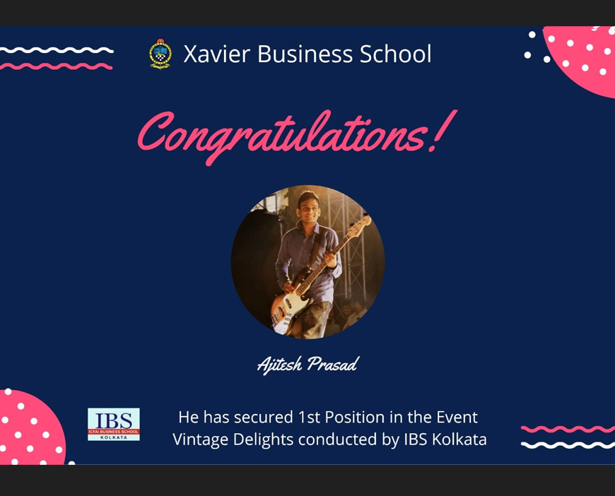 Ajitesh Prasad of MBA 2nd Year (2019-21 Batch) have secured 1st position in the event Vintage Delights (Solo Singing) at BRIO 2021 organised by ICFAI Business School, Kolkata on 17th January, 2021.