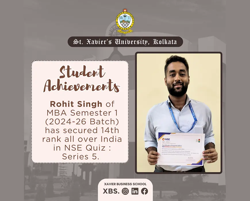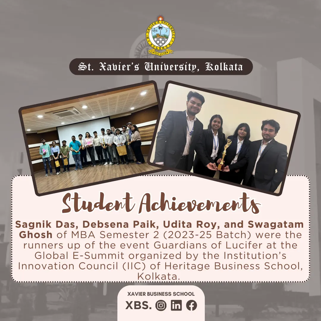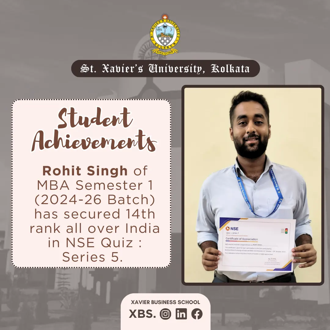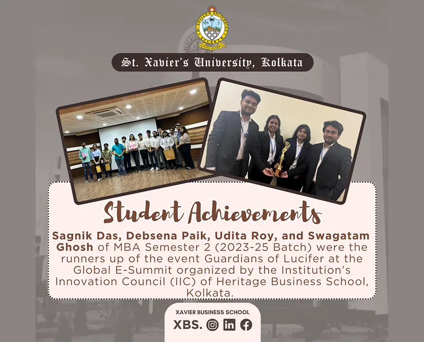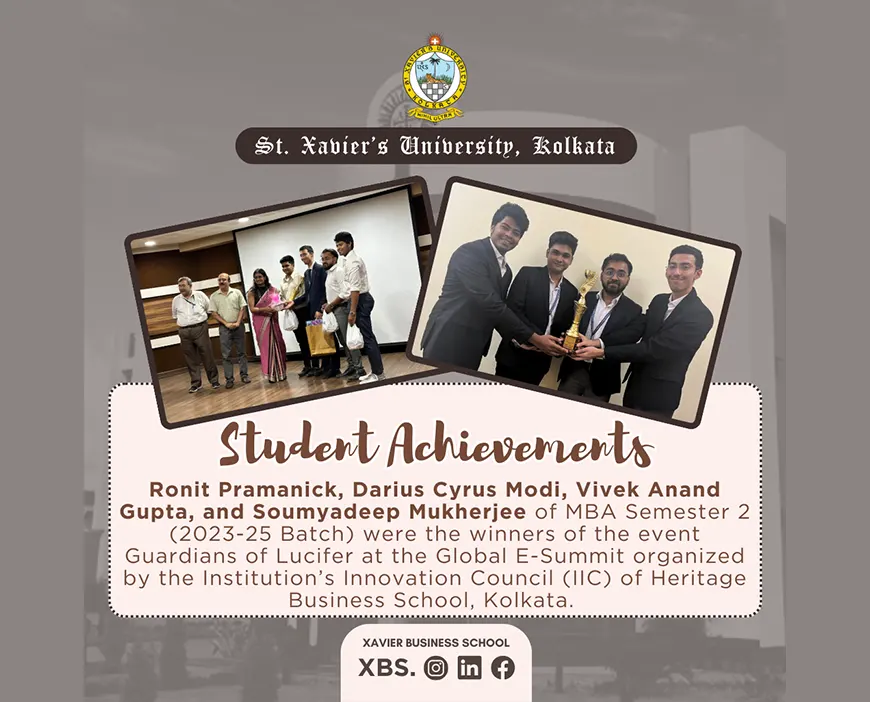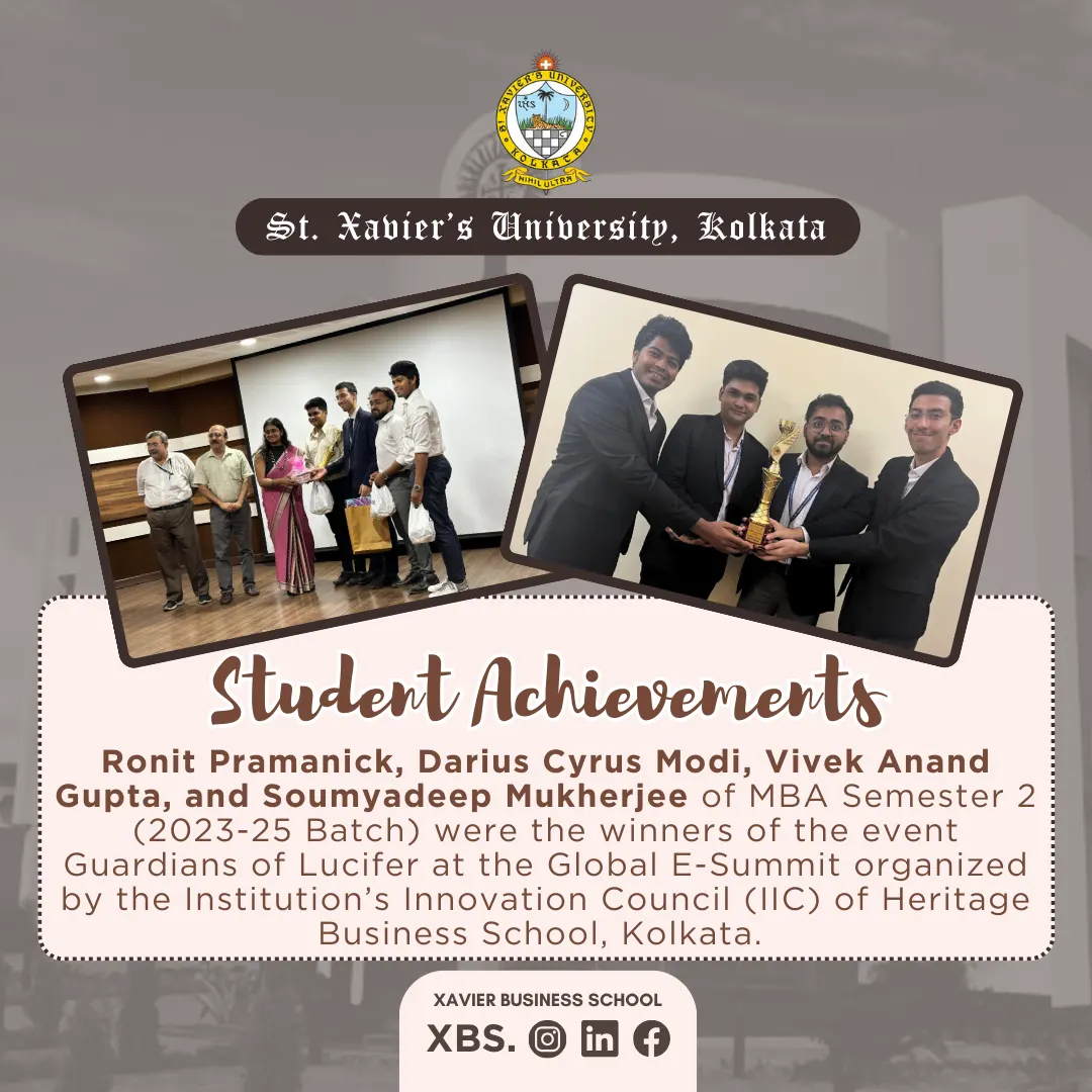 Sambit Sen has secured 1st position in the Intra University Essay Writing Competition organized by St. Xavierโs University Kolkata in February 2019.